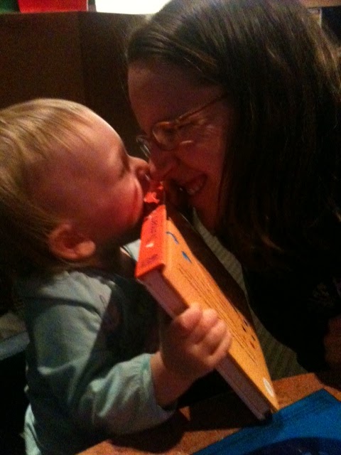 went to Buffalo Wild Wings with mommy and daddy where I got to eat chicken tenders and fries with my milk... while daddy played trivia, I played my farm animal app on his phone... it took a while to leave b-dubs since we knew so many people who were also eating there (Arden, Ed, Claire, Dylan, Matt, Rachel, Bill, Melinda, BDog, and so on...) and of course everyone wanted to see me... I just wanted to play the games and to run around the restaurant!