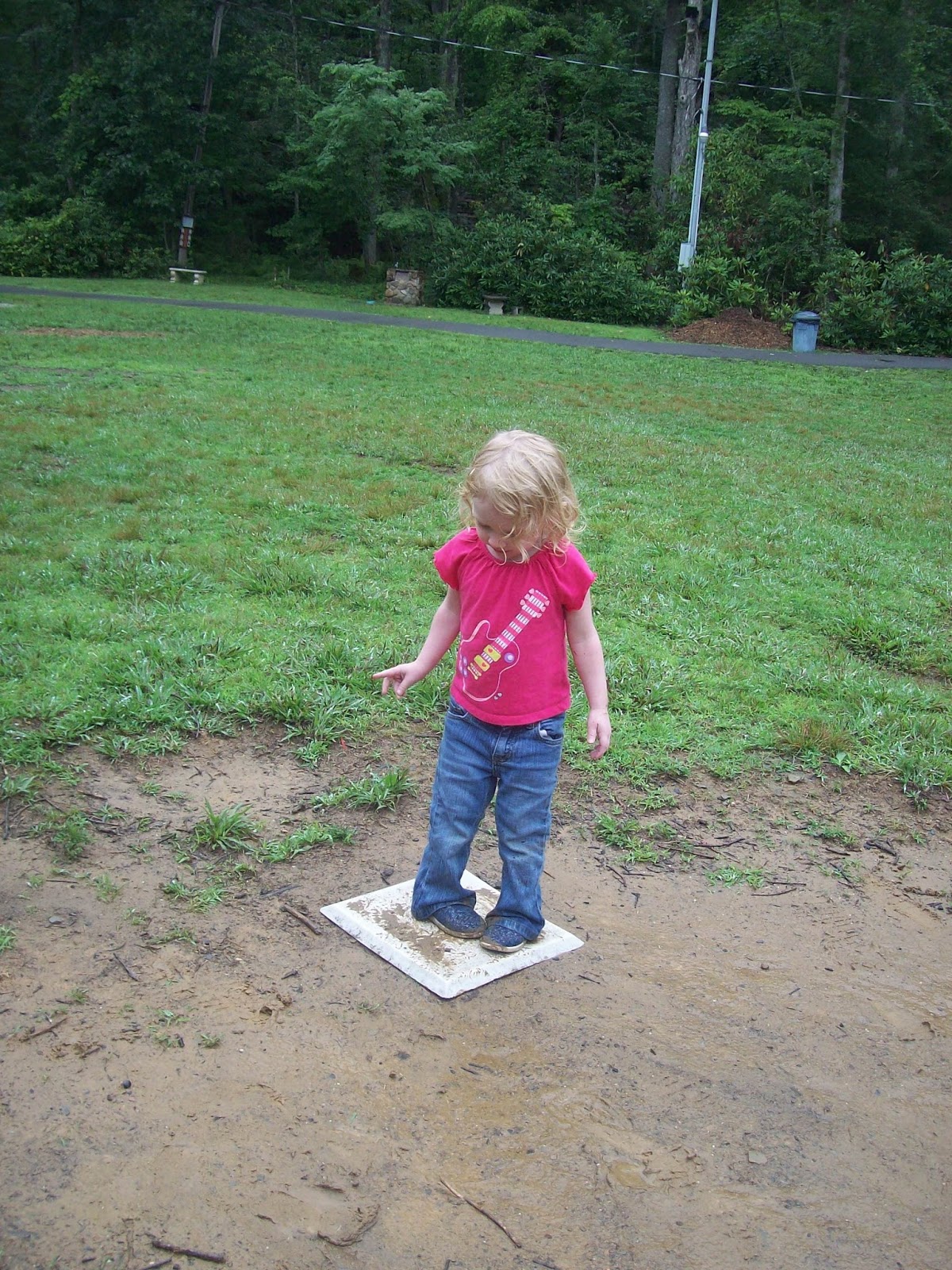 - This afternoon I played kickball. Mostly, I just ran to the bases and jumped in the mud puddles.