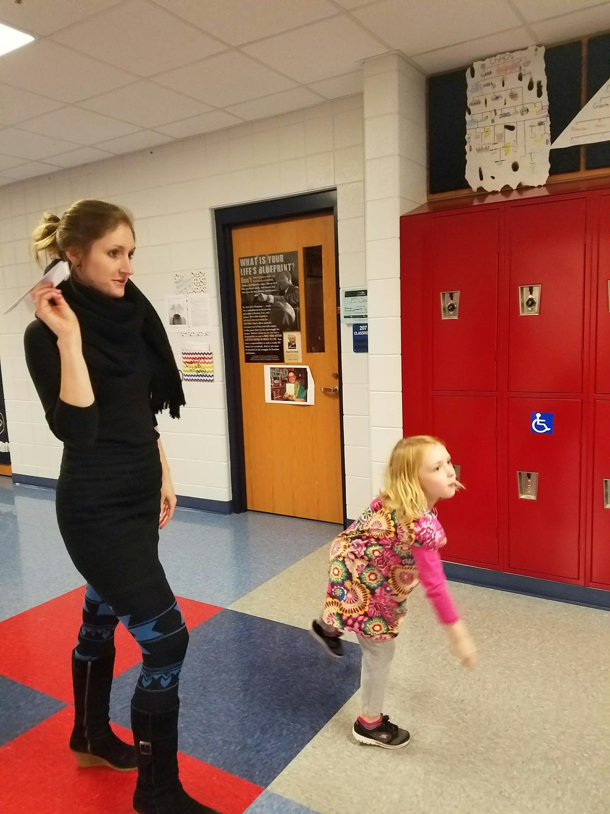 Today at school, we painted a fish in art class. I told Mommy that maybe she would get to see it at the art show... Mommy isn't quite sure what I'm talking about. I left school with Maggie and her Daddy. They took me to Mommy at her school where she was wrapping up a meeting.