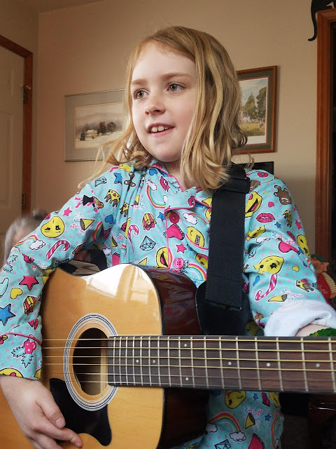 I was super excited when I realized that tonight was New Year's Eve. Mommy made bags for me again this year. Each bag had something for me or something for us to do together. We painted my nails, played Go Fish, ate snacks, watched a show of my choice, and got decked out for New Year's! I had no issue staying awake until midnight.